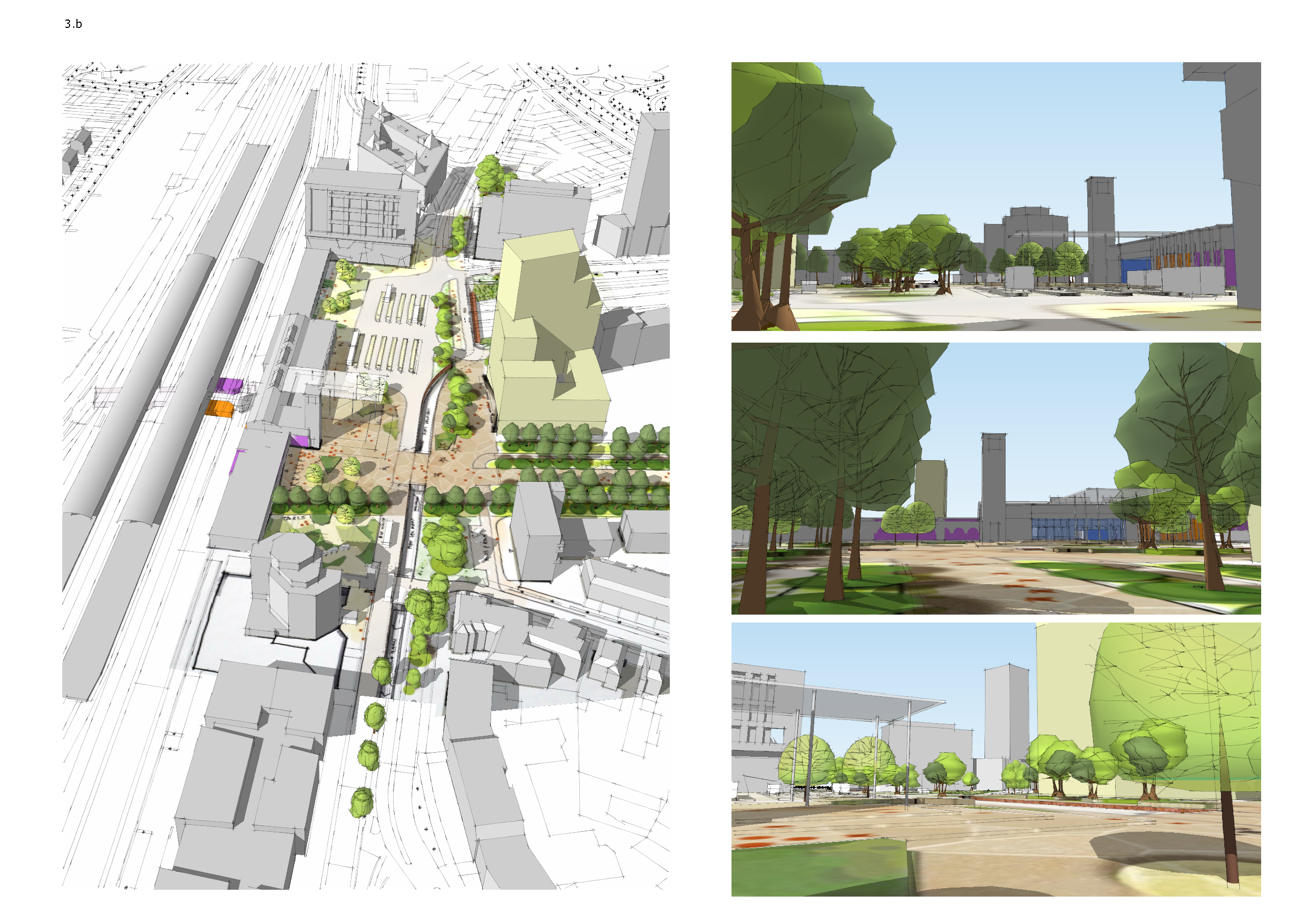 This complex puzzle of pedestrian, bike and car routes, combined with a planned upgrade and extension of the public transport capacity was addressed in a series of workshops with all major stake holders and resulted in three models as a mutual starting point for the redevelopment.
